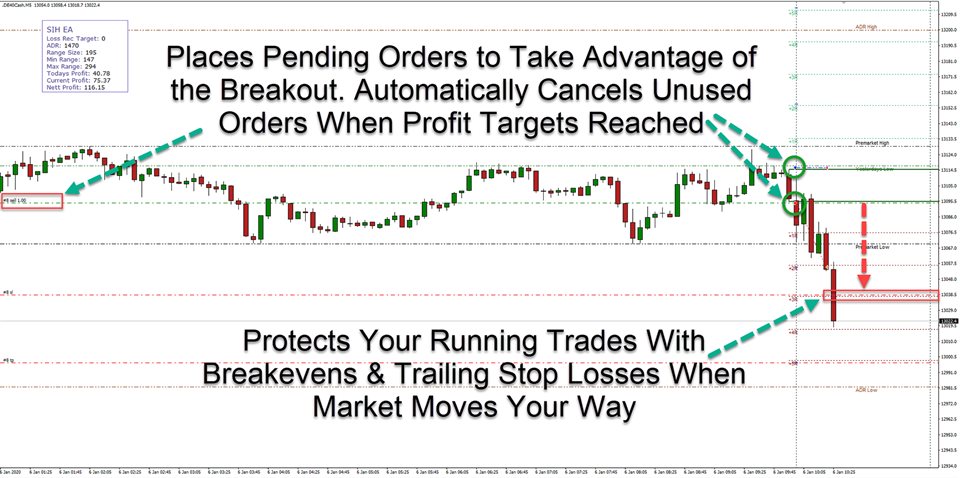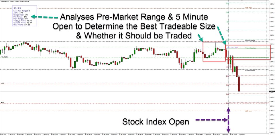 利用主要股指的开盘波动,并从市场开盘突破时的突然波动中获利。 这些策略的目标只是从市场在开盘时朝一个方向快速而猛烈移动的日子中受益,并控制这种变化。 如果市场开盘疲软且没有方向,EA 会锁定对冲损失并等待市场决定方向,然后再平仓。 股指对冲 EA 会在开盘前分析区间,并寻找理想的可交易距离,以便在市场开盘后朝任一方向快速波动时尝试兑现。 该策略适用于任何股票指数,如 DAX、DOW、NAS、S&P500 或 FTSE。 如果盘前区间太大或太小,它将跳过盘前价格走势并尝试突破最初的 5 分钟开盘区间。 此功能有助于在开盘时创造理想的交易条件,以避免在范围太窄的情况下出现拉锯,或者在范围太宽的情况下避免无法实现目标的可能性。 测试表明,理想的交易区间不低于 ADR 的 10%,且不高于 ADR 的 20%,以创造最大的机会在开盘时彻底突破并实现可实现的目标。