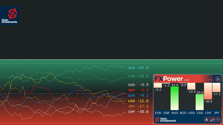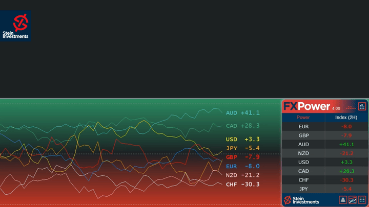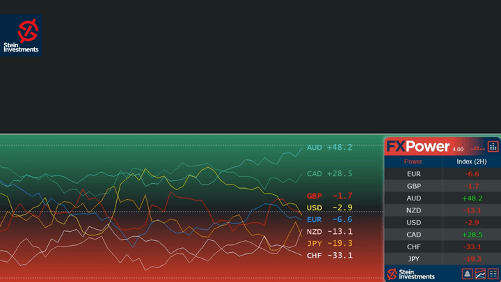 使用 FX Power 柱状图按钮显示您需要的货币线,并比较短期和长期分析,以确定有效的组合。