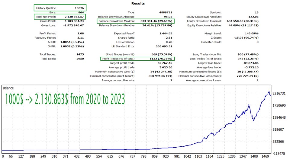 該算法在每筆交易中使用 SL 和 TP,還使用追踪止損來最大化獲利交易,並最小化虧損交易。