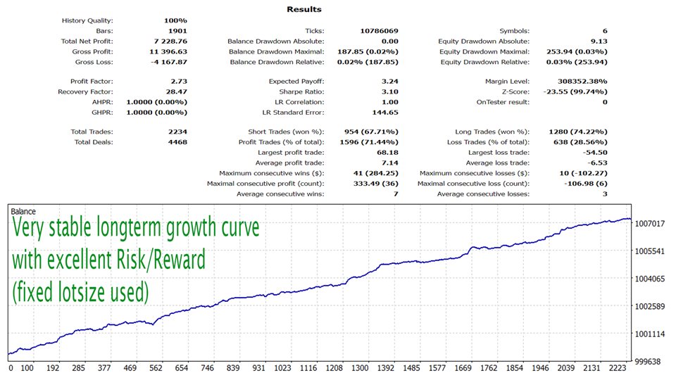 - 它使用真實可變點差測試在 MT4、MT5、TDS2 和多個經紀商上輕鬆顯示非常穩定的回測