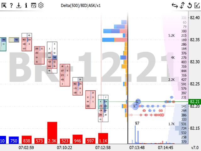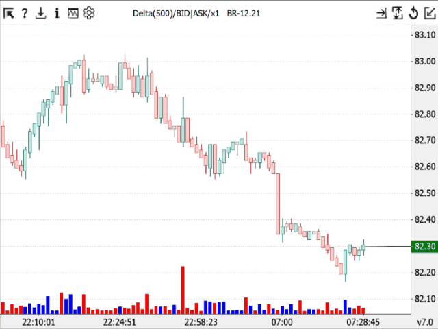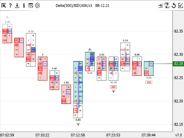 - "Delta and BID+ASK" - display the delta and the sum of BID+ASK volumes.