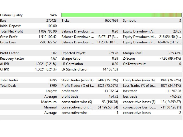 - 建议进行 5-10 年的长期测试,以显示 EA 在各种市场条件下的稳定性。