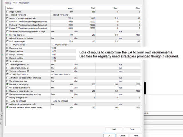 EA 将在突破后自动为您设置止损,并且还可以将您的止损移动到快速收支平衡以在出现虚假突破时保护您的资金。 您可以设置风险量和许多其他设置,这些设置在下面有更多详细说明。