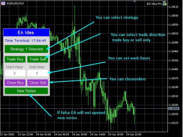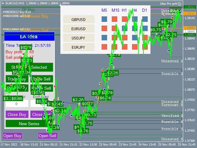 Ea交易简单易用-只需将其与eurusd gbpusd nzdusd audusd m5的默认设置连接即可。 为了获得最佳效果,建议在图表上取消Ea交易面板上的交易方向-"交易买入"(面板上的绿色表示允许Ea交易购买,红色表示禁止购买)或"交易卖出"(类似)。