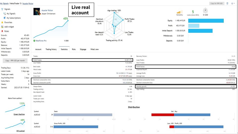 Aussie Victor is a trading system designed for the FX pair AUD-CAD. To find its entries this EA uses a type of machine learning process to search for price patterns with a high degree of repetition.