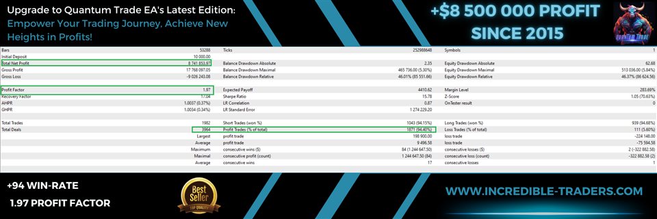 介绍 Quantum Trade EA 是一款突破性的 MQL5 专家顾问,它正在改变您交易著名的 GBPUSD 货币对的方式! Quantum Trade由拥有超过13年交易经验的资深交易者团队开发 EA 旨在通过其创新和动态的突破区域策略将您的交易之旅推向新的高度。