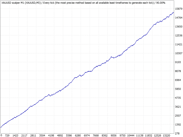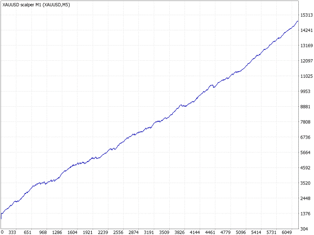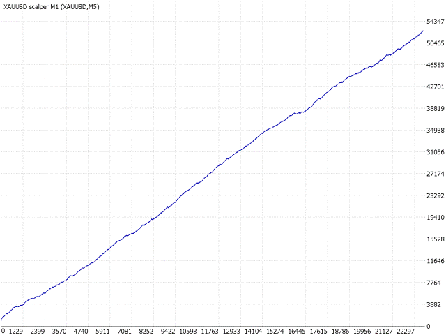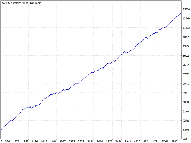 XAUUSD scalper M1 - robot scalper for gold. This robot does not use risky trading methods such as martingale, grid, hedging, etc. The robot analyzes the market using mathematical models of linear and dynamic analysis. For its work, the robot uses data obtained from market models, standard trend indicators, channel indicators and oscillators. Based on the collected data, the robot determines the current price movement, likely reversal points and market dynamics. If the price movement is stable dynamic, the robot opens trades in this direction with the optimal lot to achieve the minimum risk of drawdown. In other words, if the robot sees that the probability of risk is higher than the potential profit, the robot will not open a trade and will wait for a new stable and confirmed signal. This robot first of all tries to save the investor's funds and the second task is to increase the balance. The robot trades according to the scalping strategy. That is, they will open from 2 to 10 trading operations every day. Trades intraday. But the number of trading operations directly depends on the current market activity. If the market is very active, the number of transactions may be large. We indicate the average value.