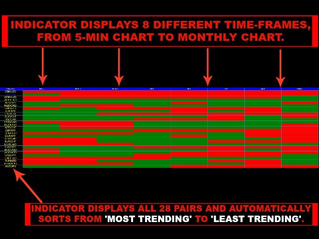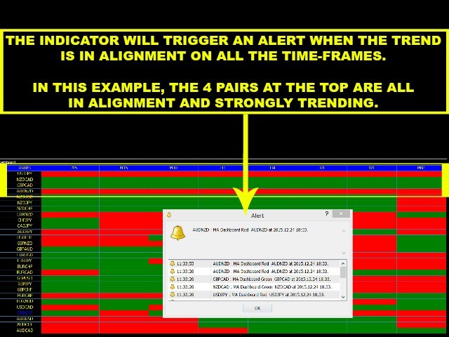 It simultaneously analyzes the moving averages for all 28 pairs and across 8 time-frames.