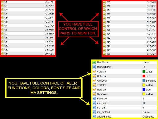 - You have full control of colors, settings and which pairs to monitor.