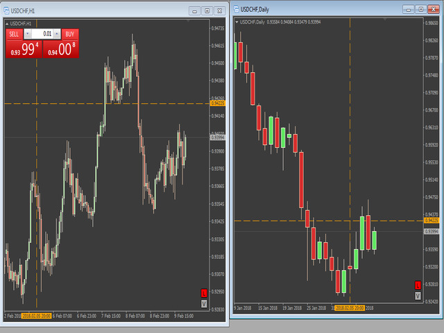 "LINKER" is an indicator that links any number of windows of the charts it is running on. A synchronized crosshair is also available, toggled by the (Ctrl) key or the (L) button. The visibility of the trade levels can be toggled on each chart separately using the (Shift) key or the (V) button. The buttons and the crosshair have customizable settings and colors.