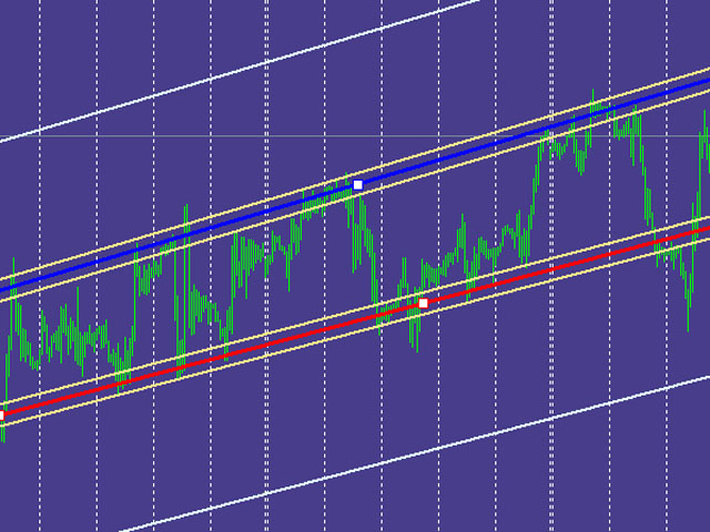 After the EA is loaded, a buffer will be generated near the two trend lines you previously drawn according to the parameter settings. Two white lines and two white lines will be drawn at a position farther from "Top" and "Base". We call the area outside the price blind zone for the time being. Our EA will work in the area within the two white lines, and the position of the two white lines is determined by the distance between "Top" and "Base" at the current time. After the price enters the blind zone, you should unload the EA, draw two new trend lines and reload the EA.