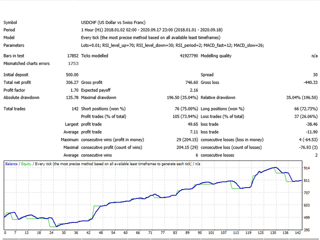 Rsi Macd Expert Advisoruses combined signal from 2 indicators (Rsi / Macd).Minimum trading account 500.best pairs: GBPCAD / EURUSD / CADJPY / USDCHF / GBPUSD / GBPJPY / USDJPYbest timeframe: 1H