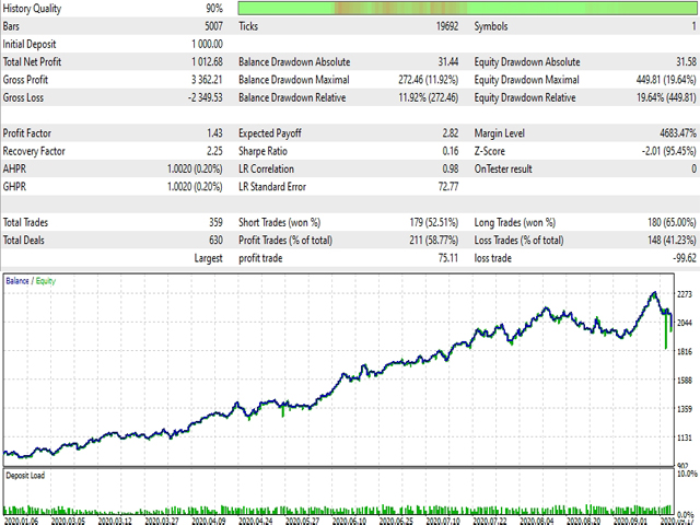 PERIOD - 要計算的柱數;COEFFICIENT - 計算通道邊界的係數;DEGREE——渠道建設的類型;MIN_CHANNEL_WIDTH - 進入交易的最小通道寬度;PERIOD_ATR, TIMEFRAME_ATR - 用於確定平均 aolatility 的 ATR 值的周期和時間範圍;RISK_PER_TRADE - 每筆交易的風險,如果 = 0,則使用 LOTS;LOTS - RISK_PER_TRADE = 0 時的交易手數;ENTRY_PCT、STOPLOSS_PCT、TAKEPROFIT1_PCT、TAKEPROFIT2_PCT - 交易進入和退出水平,指定為通道寬度的百分比;