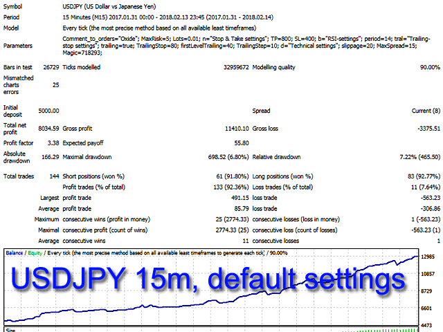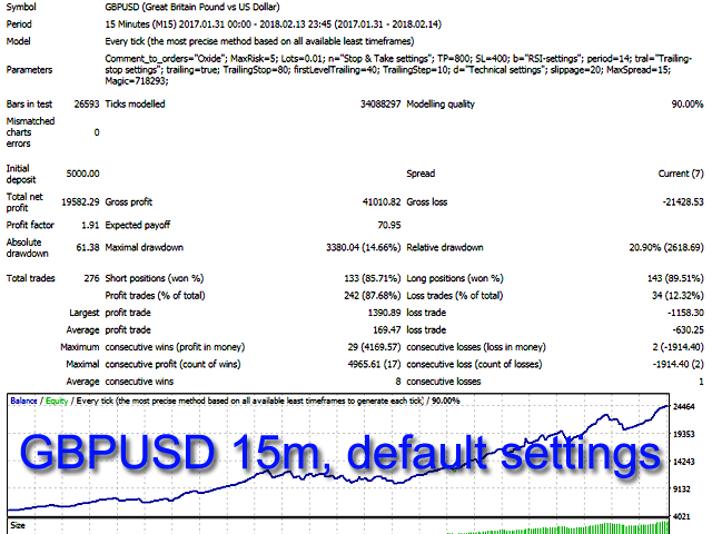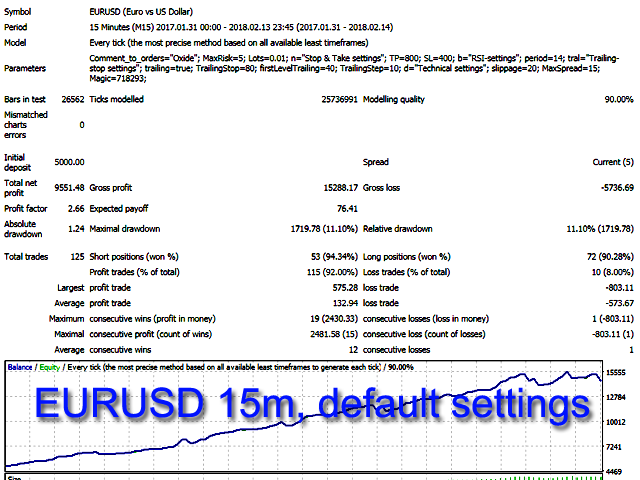The default settings are designed for the following instruments: EURUSD M15, GBPUSD M15, USDJPY M15.