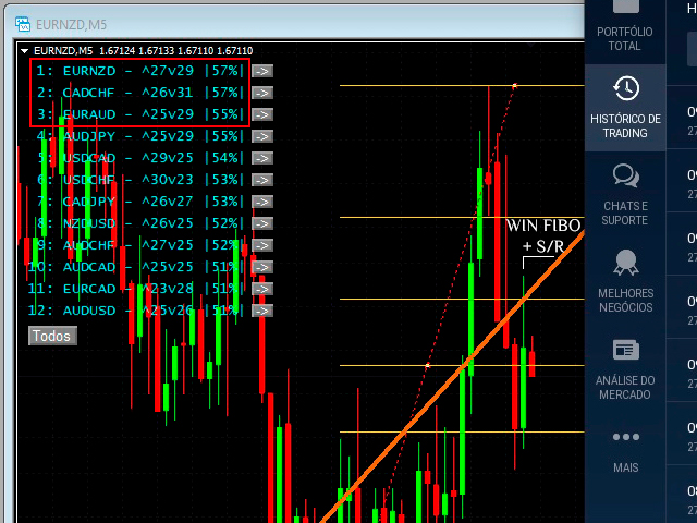 Developed to assist in binary options retraction operations, this indicator will show the best assets to operate retractions!