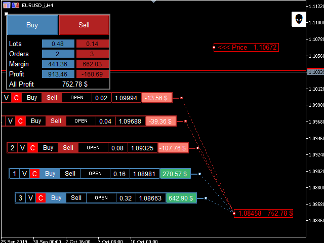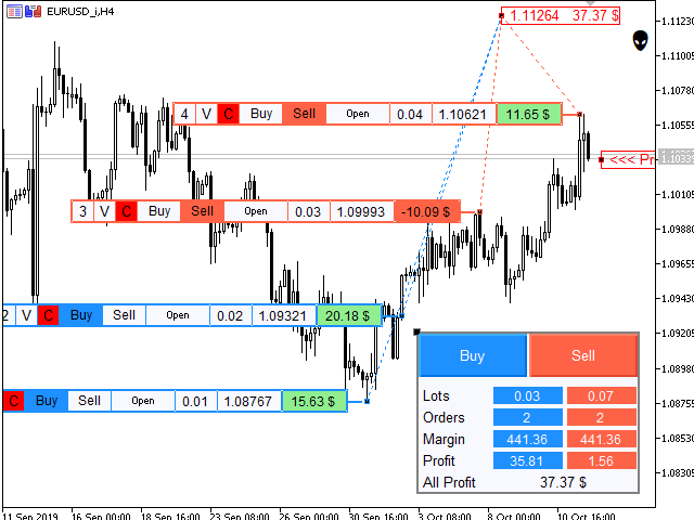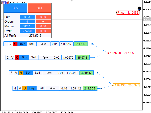 你有很多买入和卖出头寸吗?VR Calate Martingale-将计算平均价格,您可以在零或小额利润中平仓所有仓位。