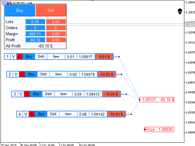 您将能够按平均价格对订单进行分组,并找到最有利可图的解决方案来平仓一个或多个仓位。