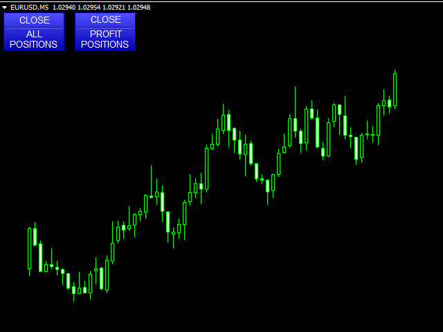 One Click Close MT4 is an EA which allows you close orders quickly. EA display on chart two buttons. The first button "Close All Positions" is using to close all opened orders. The second button "Close Profit Positions" is using to close only profitable orders. EA is closing orders for all available symbols, not only for chart symbol. In EA params you can set distance from upper chart frame (Y Offset) and from left chart frame (X Offset). For installation EA it is only need to copy One Click Close.ex4 file into MQL4 "Experts" folder.