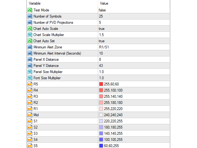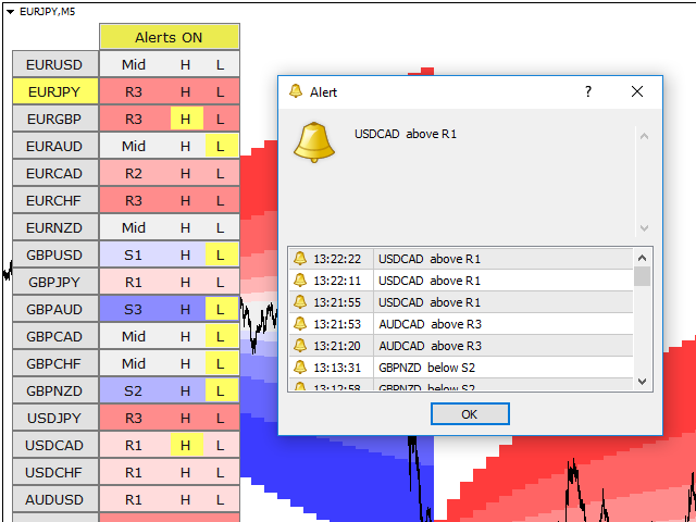 - Minimum Alert Zone - determines the alerts. For example, if you select R1/S1, the indicator will give you alerts for all levels. But if you select R5/S5 then you will not see alerts from the lower levels.