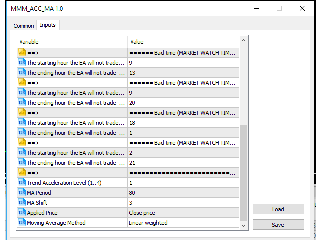 - The Starting hour the EA will not trade on Mondays (0..23h): this input defines the starting bad hour the EA will not trade. Disabled if = -1;