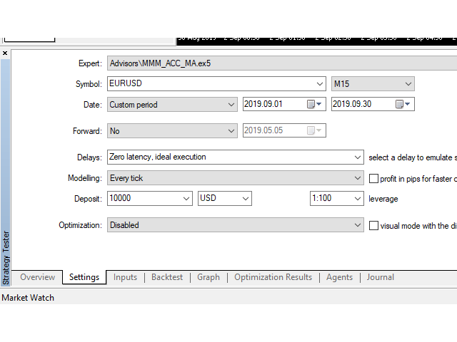 Attention! The default input values are already optimized for EURUSD at time frame M15, spread 15 and Netting account mode. Always use the strategy tester optimization to set the best values for your assets, time frame, spread and account mode. It is very important and strongly recommended for successful trading. Optimize the input values as you need.