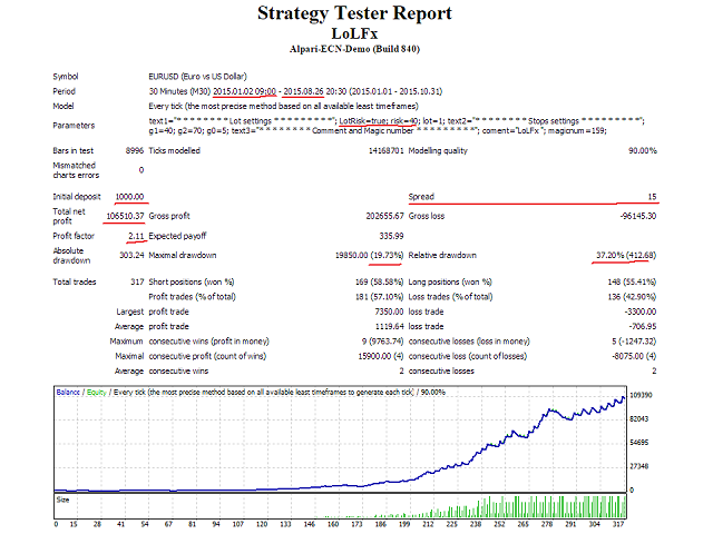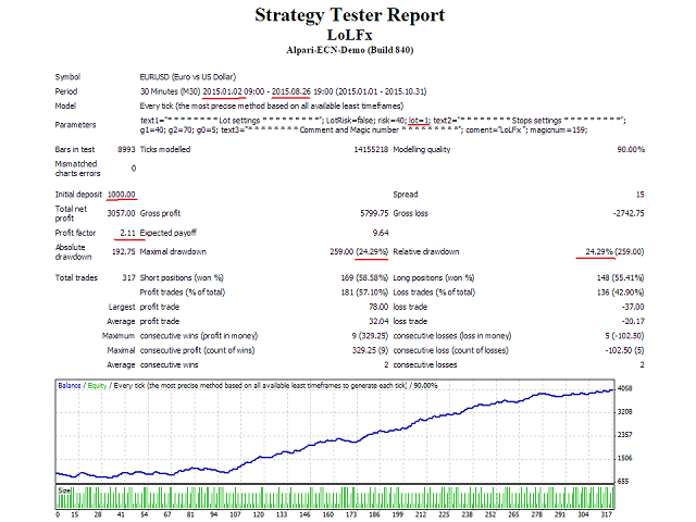 LoLFx is a scalper Expert Advisor which uses the strategy of support and resistance lines breakthrough. Fully automated. Designed for trading EURUSD, a low spread broker is preferred.