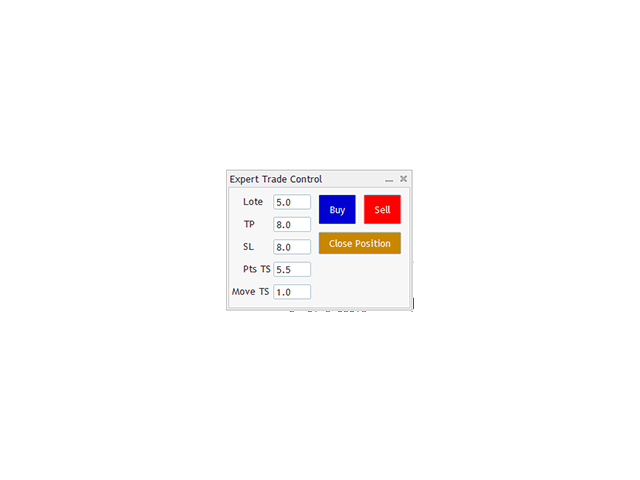 The Expert Trade Control brings practicality and security, you define the size of your lot, total points of TP and SL, ready just click on buy or sell to enter a trade and when you want to exit, just close the position.