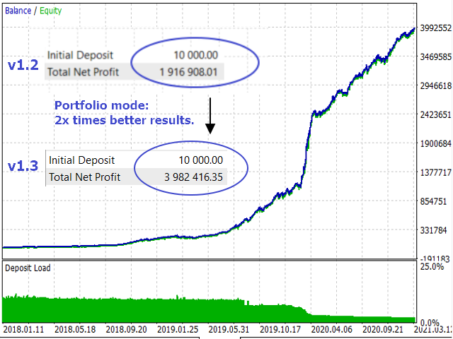"Portfolio" mode is a one click setup that's allows you to run few pairs at the same time. Currencies and input already adjusted with this mode you just need to click start button.