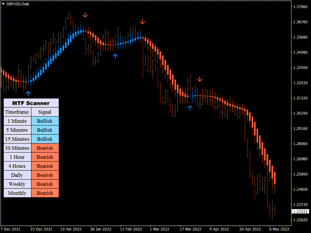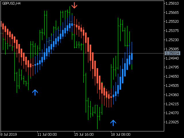 KT Heiken Ashi Smoothed is a smoothed version of the standard Heiken Ashi. Moreover, it also plots buy/sell arrows on a trend change.
