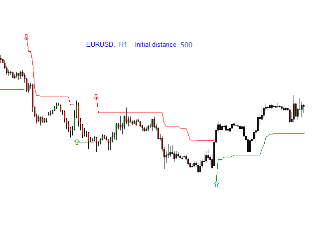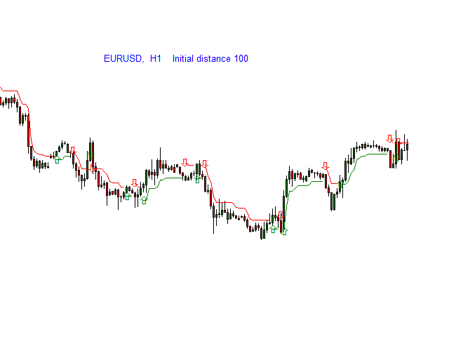 Example. The adaptive trailing mode is set from below, the constant distance is 100 points, the value rsi = 75. Distance reduction coefficient K =