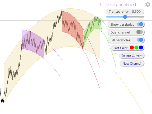 Convenient drawing of parabolic channels by four points (two lower and two upper extremums).Additional control keys: