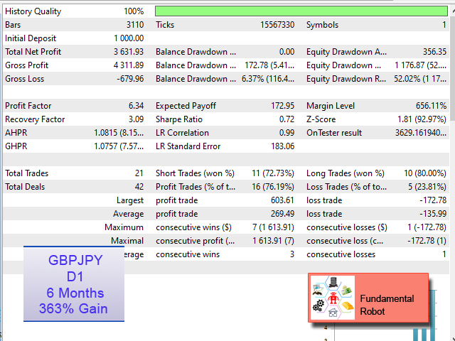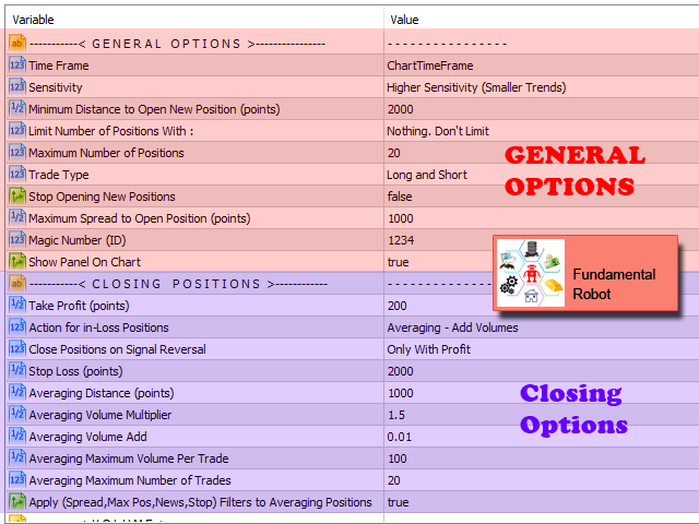 Fundamental Robot is an Expert Advisor based on Fundamental Signals Indicator. The Fundamental Signals Indicator has a powerful calculation engine that can predict market movement over 30000 points. The indicator is named fundamental because it can predict trends with large movements, no complicated inputs and low risk.