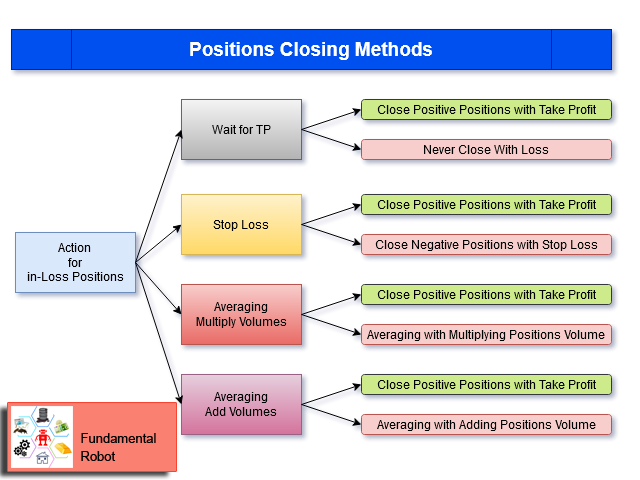 - Action for in-Loss Positions : Wait for TP / Stop Loss / Averaging - Multiply Volumes / Averaging - Add Volumes