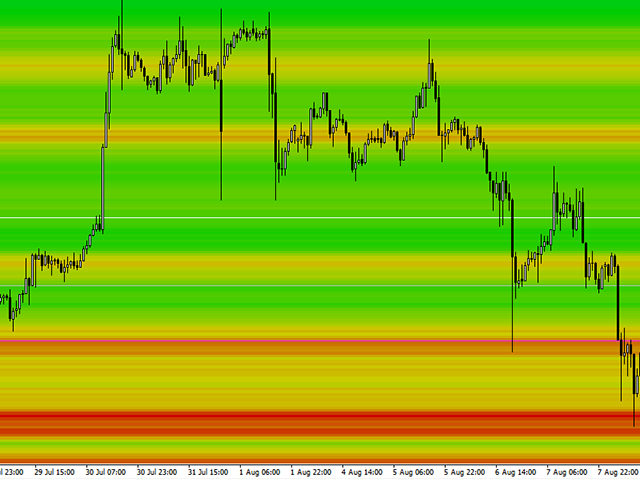 IceFX Heatmap is a special indicator that shows the places where the price has been staying and ranging over the past few days. These sites will be displayed in a "Heatmap style", with which you can clearly see the main formed bands. The main rates (where the price has "lingered/stayed" much) are indicated in bright colors (in case of black-and-white view) or red color (in case of color view).