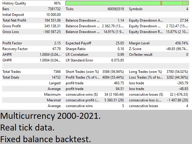 - It DOES NOT have trades every day! Nor does it have profit every week. It trades the way most professionals do: with rare, but accurate entries. The system leverages relatively big trending movements, and these do not happen every day. When they do, the EA will make sure to use them to the fullest extent possible- It is not a curve fitting, not a tester grail (like most scalpers) and not a system on overoptimized parameters of indicators. The systems are based on fundumental principles which work on many popular instruments- "Trend is your friend" - the system trades only in the direction of trends