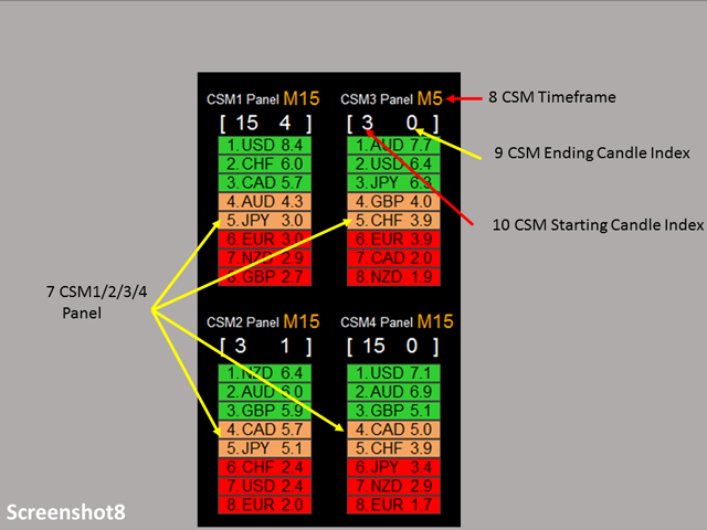 - Currency Strength Meter 1/2/3/4 Starting Candle Index (Refer to entry rule)