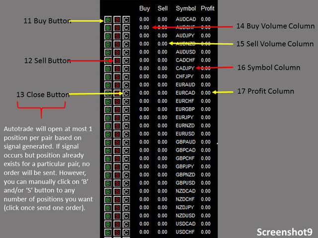 - Session Input, please refer to other dashboard product description (Dashboard Super Currency Strength)
