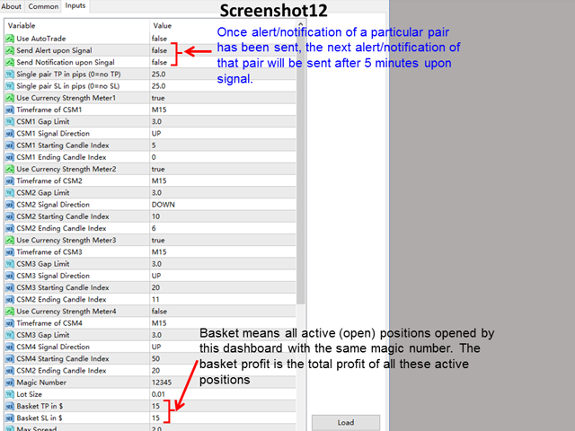 - Monitor all 28 pairs and provide trading signals based on the Currency Strength Meter selected, time-frame of the Currency Strength Meter, and the starting and ending candle selected, which combine to generate the specific PA pattern as desired. (see screenshot 1, 2, 3, 4, and 5).