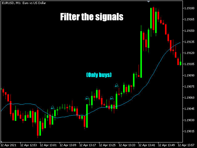 配置此指标后,每次出现买入/卖出信号时都会显示一个图标,接下来出现的任何信号都会创建警报、发送邮件或发送应用程序通知。