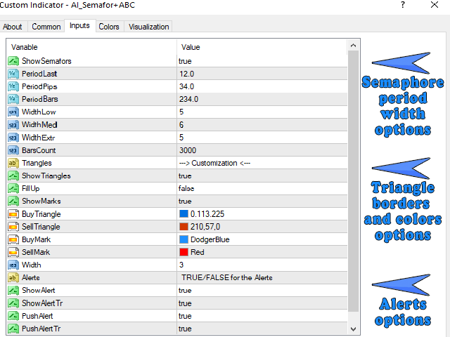 - If you want to experiment and try different settings you can open Indicator list , choose AI_Semaphore+ABC and click on " Inputs " tab.