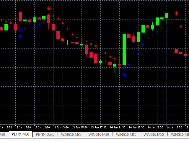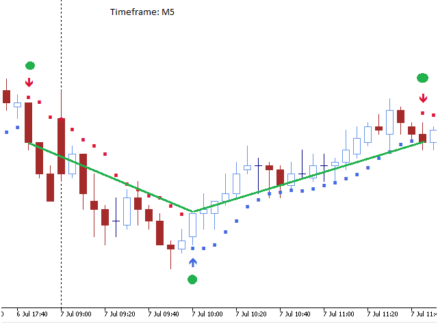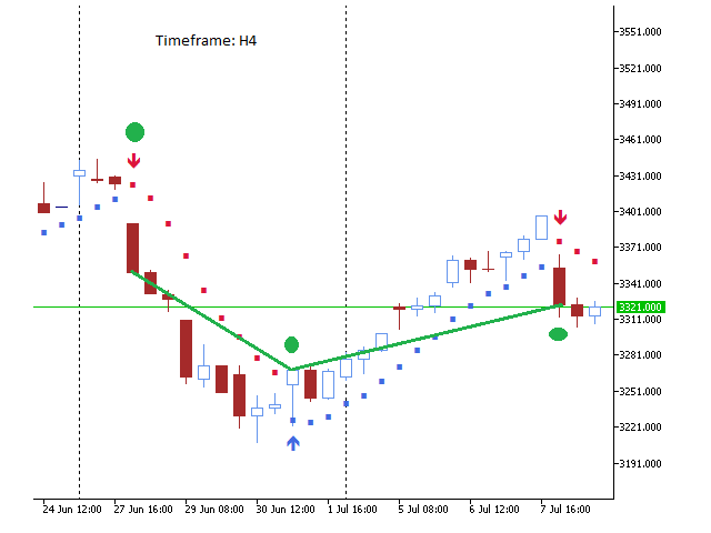 - Indicator ArrowUp: An up arrow will be drawn when there is a swing between trends making a strong signal for entering long positions or exiting short positions.