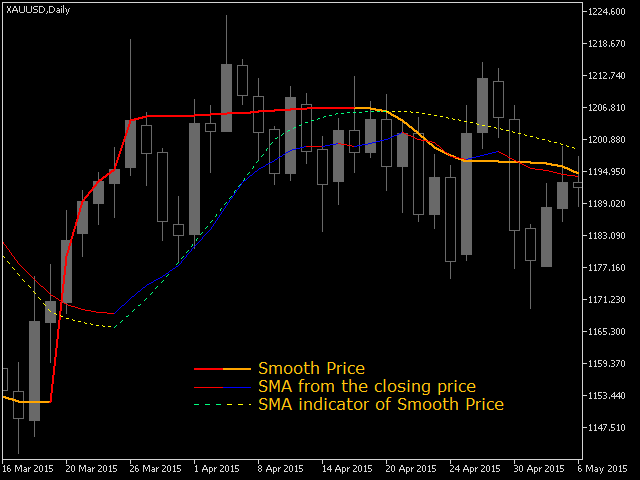 The indicator is based on the cluster digital filter , which, unlike the ClusterSMA , is applied directly to the price time series. Smooth Price does not redraw (except the very last, zero bar) and is an improved version of the famous similarly named indicator . Features of the cluster filter based indicators are described in the author's blog .