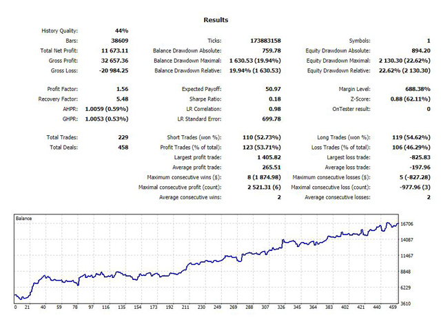 - Stop_Loss - Stop Loss defined in pips. I recommend to not change this parameter (45 recommended)