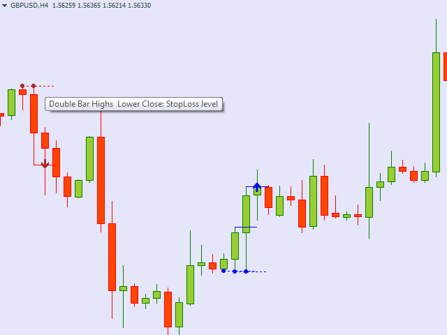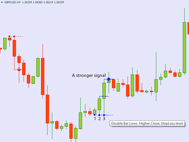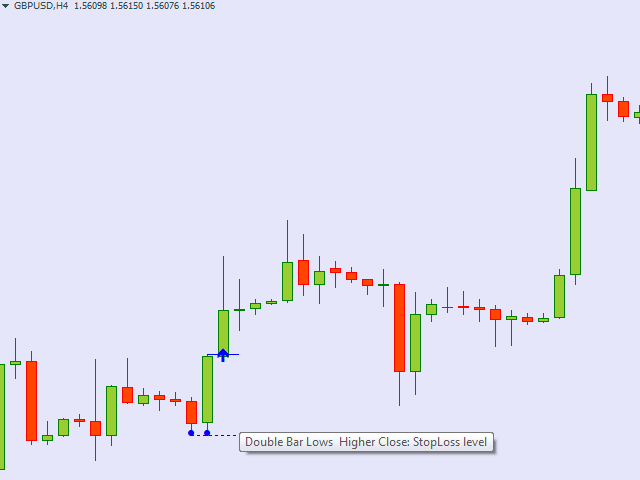 The indicator is looking for a Price Action double bar reversal pattern.