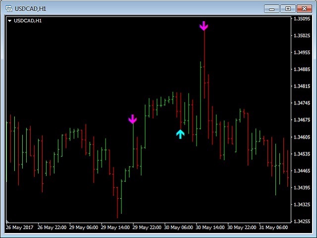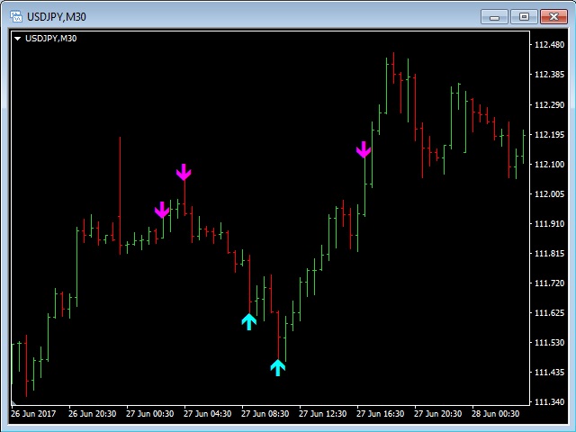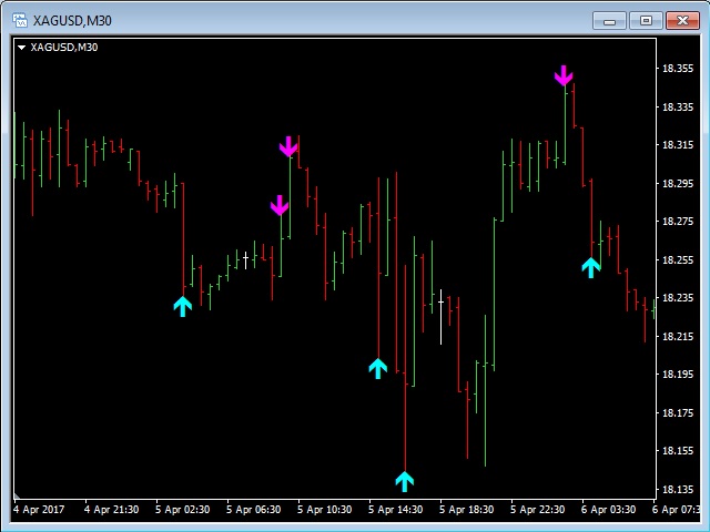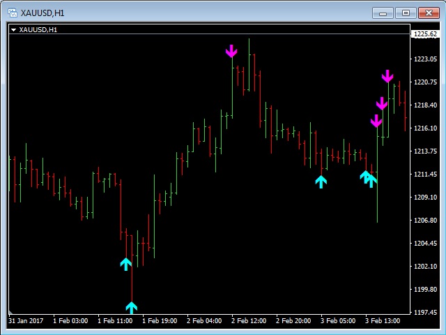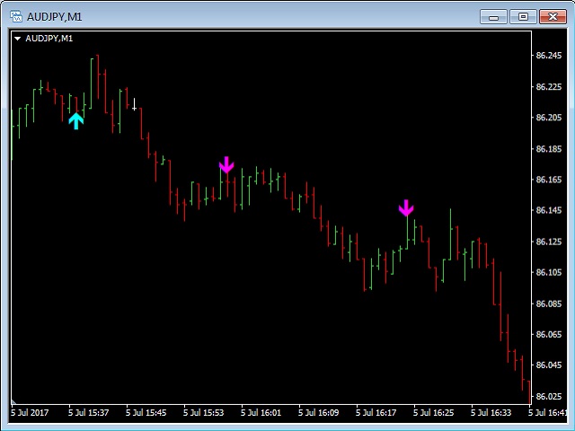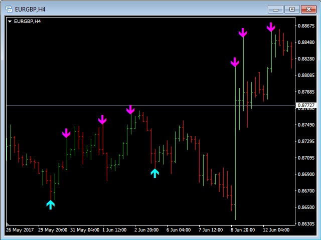 This indicator will show Buy (color Aqua) or Sell (color Magenta) arrow at the moment when a Long or a Short local trend (local to the current TimeFrame) is expected.