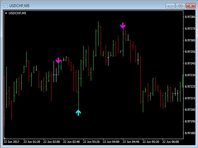 The huge advantage is that the indicator does not have any input parameters. So, you will not waste your time and will not struggle to change them for different TimeFrames and currency pairs. This indicator is universal, but it will work better on H1 and lower TFs.