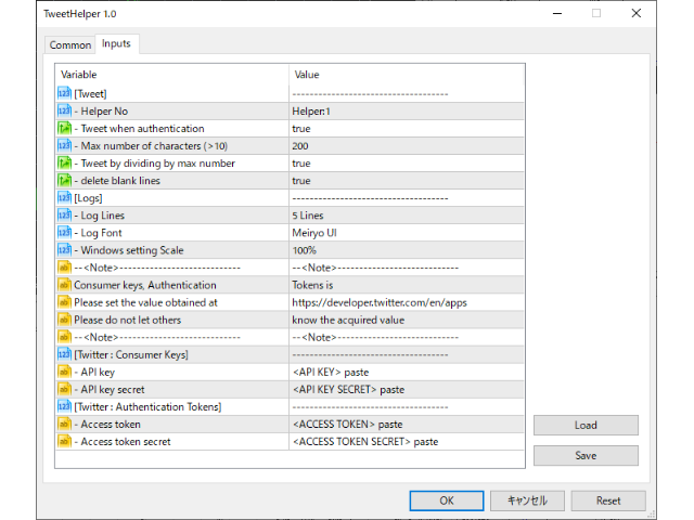 Set the obtained [Consumer Keys] and [Authentication Tokens]