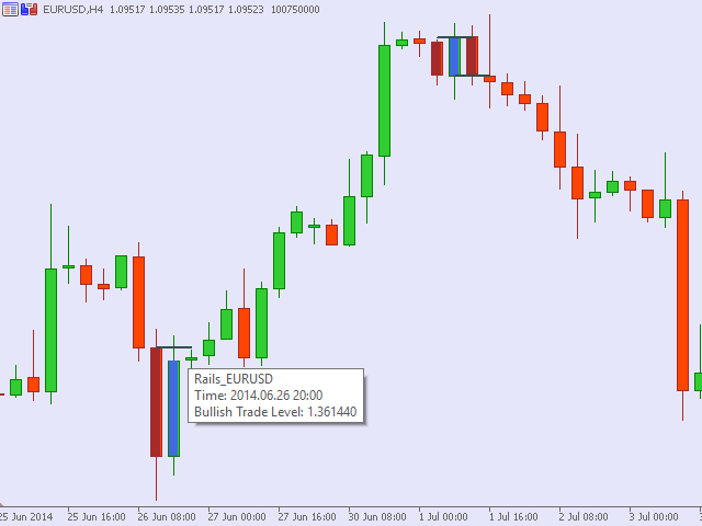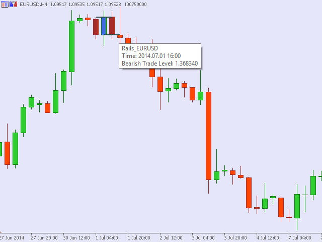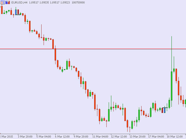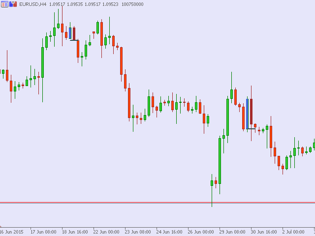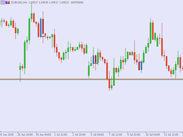 For the bearish pattern (the pattern's right candle is a bearish one), SellStop pending order is placed slightly below the pattern's Low. The initial stop is placed slightly above the pattern's High. For the bullish pattern (the pattern's right candle is a bullish one), the case is the same in inverse manner.