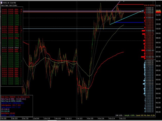Indicator focusing on the market's ZigZag, also adding 2 other already established indicators: Book of Offers and Balance Aggressor (Time & Trades), this indicator allows to detect the best price trigger (buy or sell) in the aggressions to the Book of Offers including filters important as Aggression in Candle.
