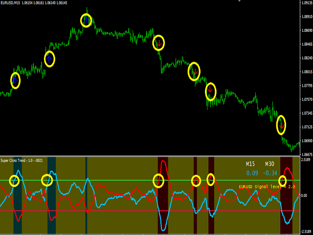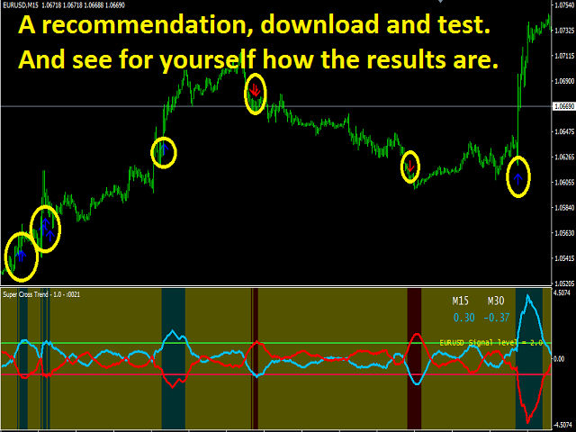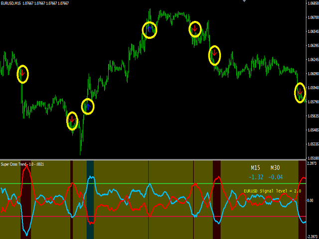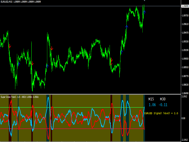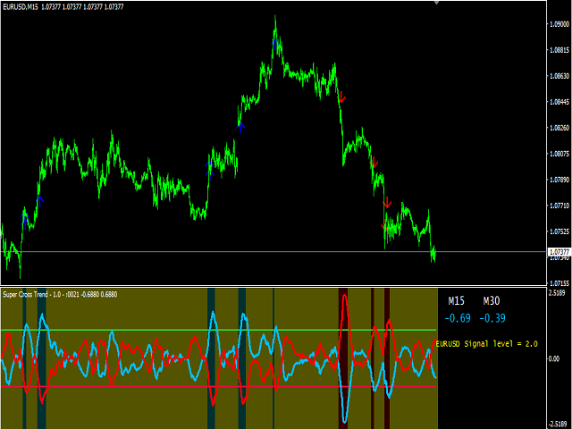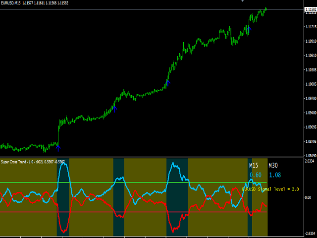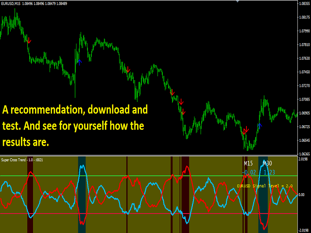 The Super Cross Trend indicator is designed for trend and signal trading. This indicator generates trend signals. It uses many algorithms and indicators to generate this signal. It tries to generate a signal from the points with the highest trend potential.
